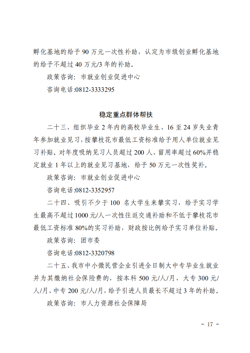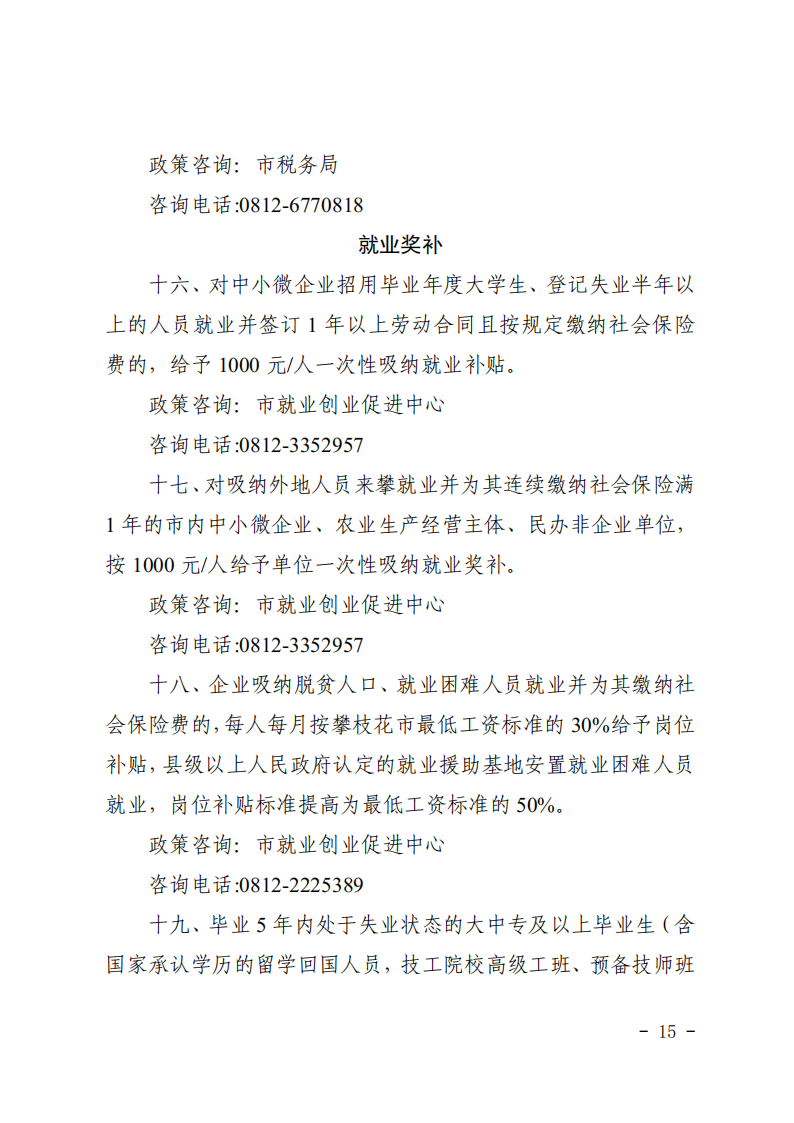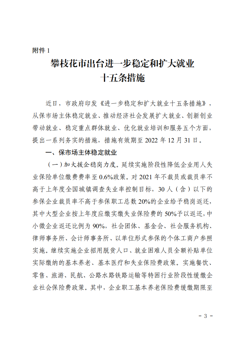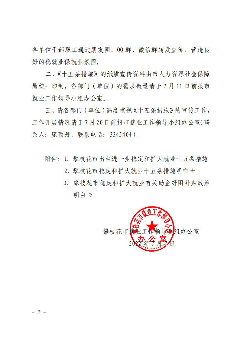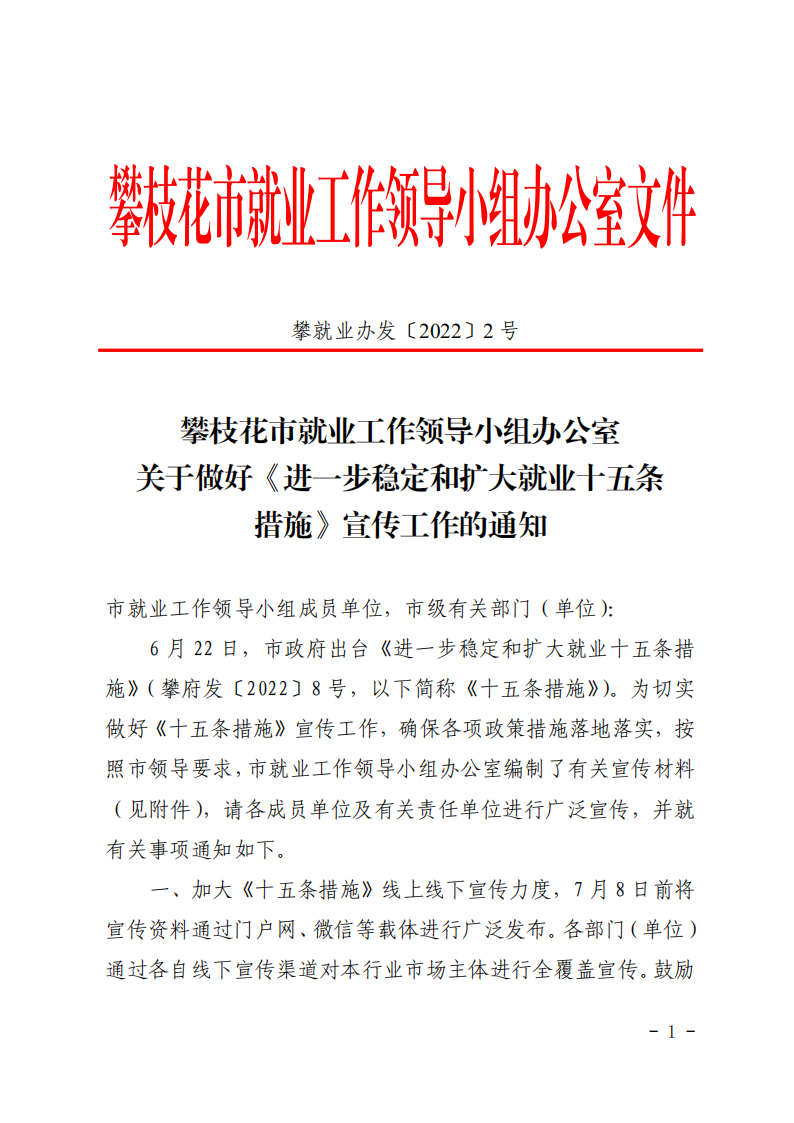攀枝花市就业工作领导小组办公室关于做好《进一步稳定和扩大就业十五条措施》宣传工作的通知
