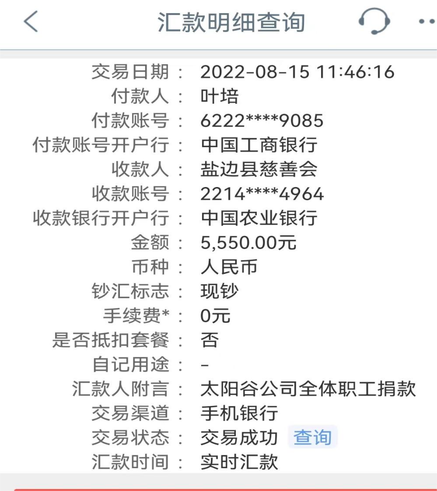 为进一步巩固拓展脱贫攻坚成果与乡村振兴有效衔接,大力弘扬正气激励先进,努力改善民生扶危济困,2022年8月15日,太阳谷公司积极响应盐边县慈善会号召,组织全体干部职工积极参与“盐边县助力乡村振兴捐赠”活动,以实际行动践行国有企业的社会责任与担当。