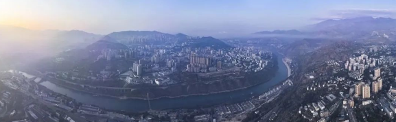 晨曦中的攀枝花主城区全景。